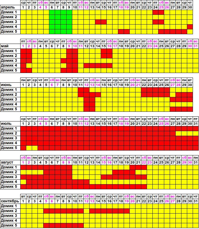 красный — занято, жёлтый — свободно, зеленый — свободно со скидкой 10%