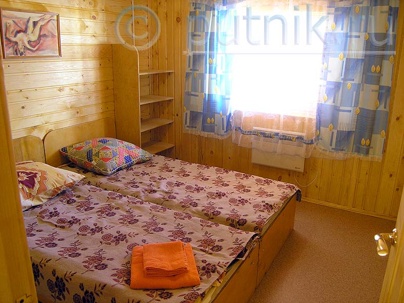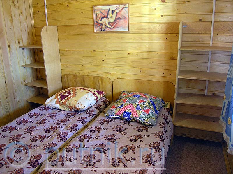 Из столовой — выходы в две одинаковые спальни, где установлены по 2 односпальных кровати. Несмотря на это, обязательными к оплате являются лишь 2 основных места, а два других считаются дополнительными. Кроме кроватей, в спальнях есть только этажерки. Шкафов — нет.